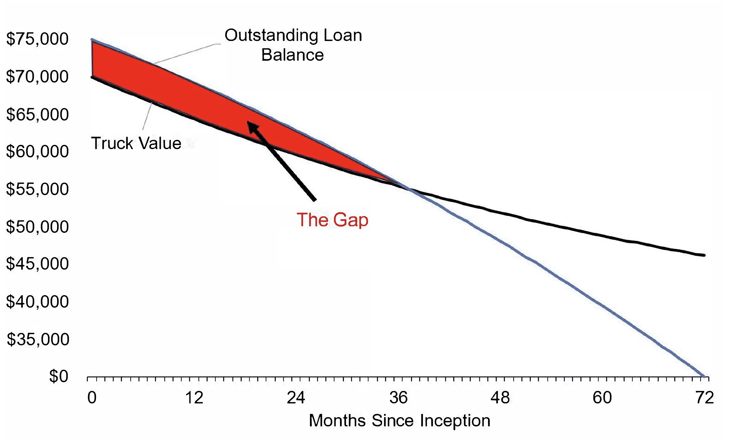 If your customer’s truck is totaled due to theft, collision, fire, or any insured event, the truck’s value may be less than the remaining loan balance, leaving them responsible for the difference.